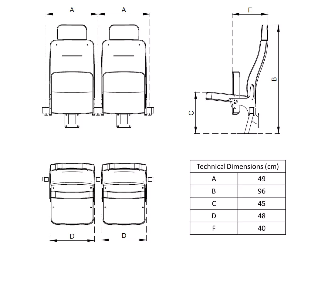 Konforlu minderleri ve modern tasarımıyla bu VIP koltuk, prestijli etkinlik alanları ve protokol tribünleri için idealdir. Uzun ömürlü yapısıyla güven verir.